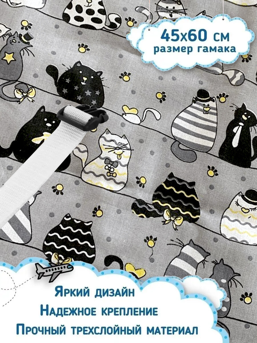 Аксессуар для удобства путешествия ребенка/ Гамак в самолёт, автобус для детей 2-5 лет (для ног) Коты информация: