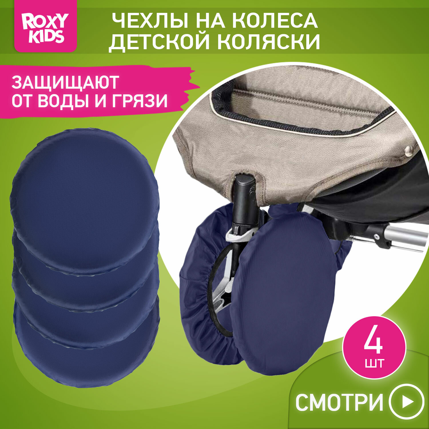 Отзывы на Чехлы на колеса для детской коляски на резинке ROXY-KIDS, 4 шт. цвет темно-синий