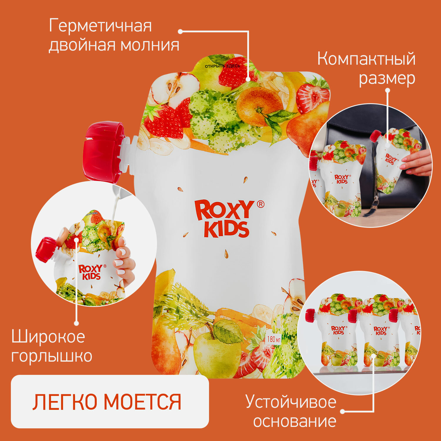 Отзывы на Многоразовые пакеты для хранения детского питания 5 шт с ложкой-накруткой ROXY-KIDS