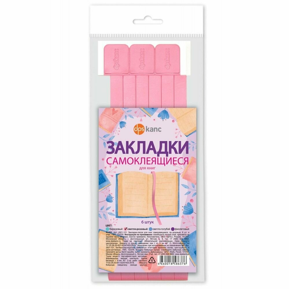 Закладки самоклеящиеся для книг 6 шт светло-розовые информация: