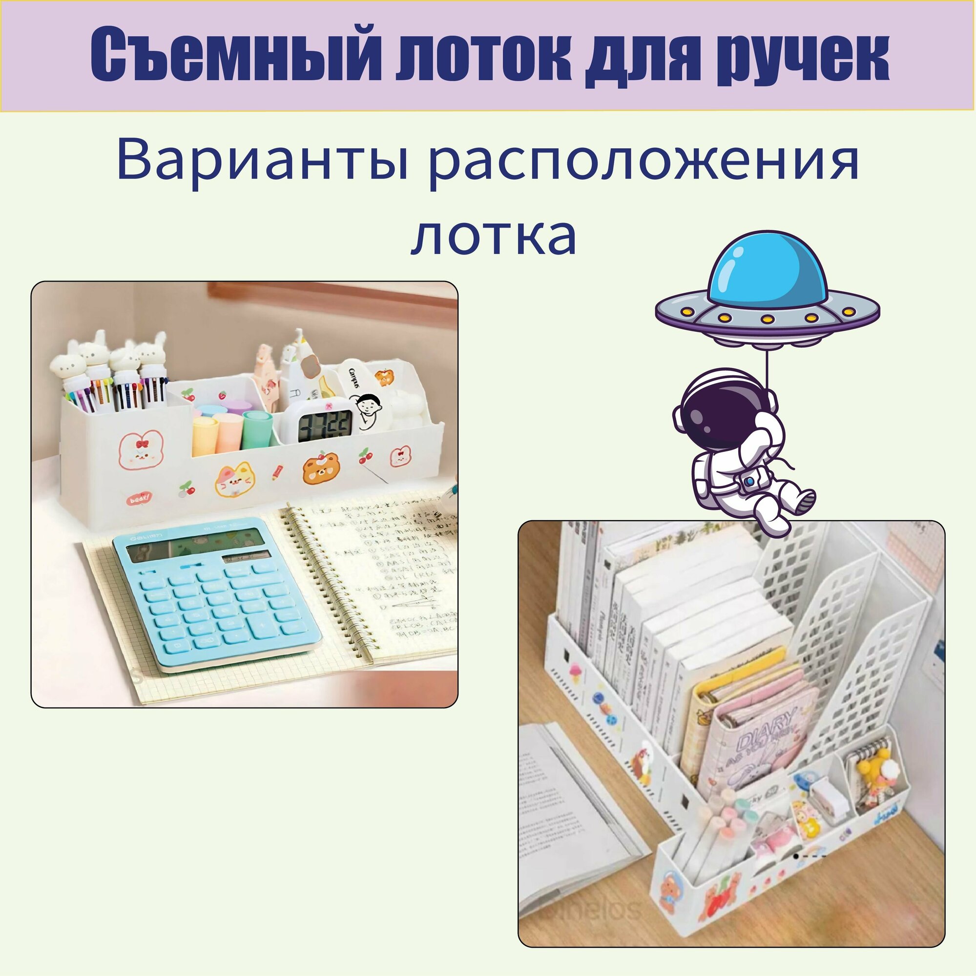 | Комплектация | Органайзер для канцелярии - 1 шт; Съемный канцелярский лоток -1шт; Наклейки - 3 листа. |