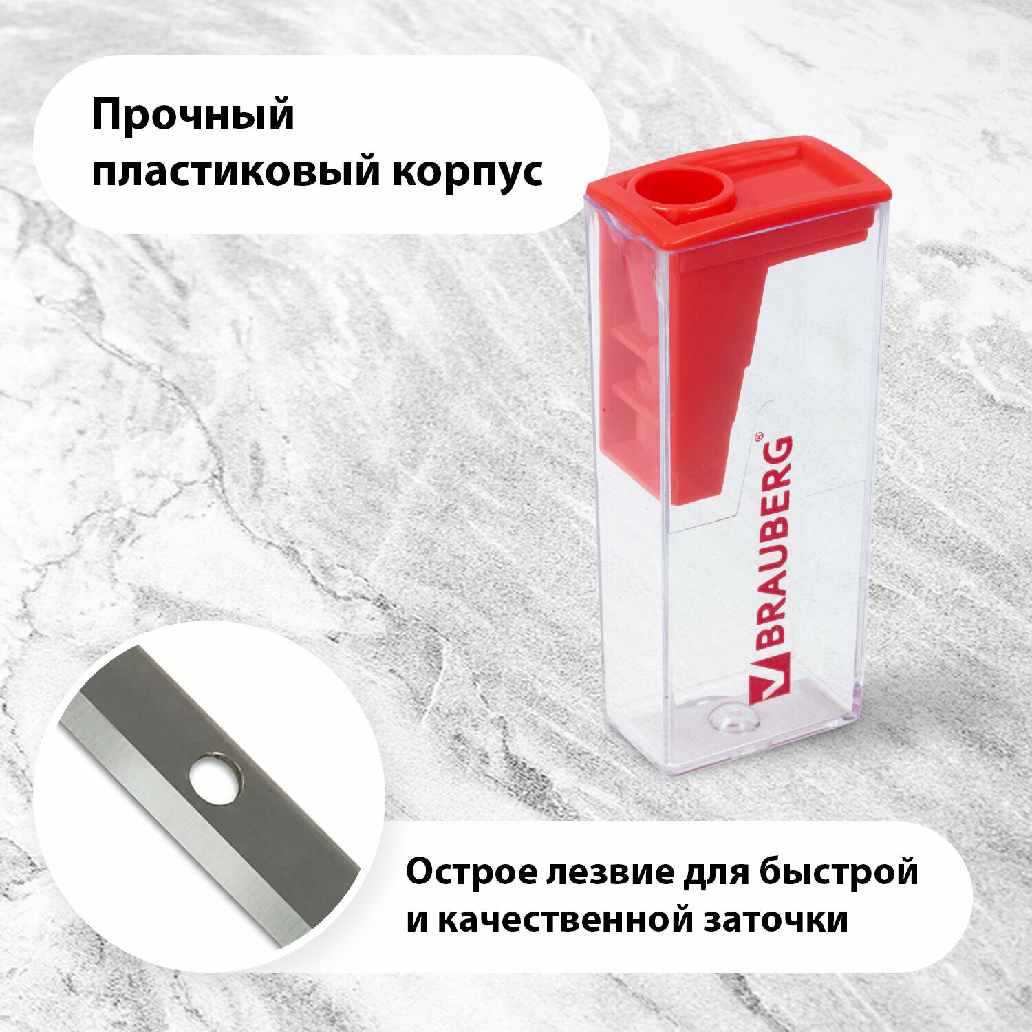 Точилка для классических и утолщенных карандашей BRAUBERG "Grade", 2 отверстия, с контейнером, 271998