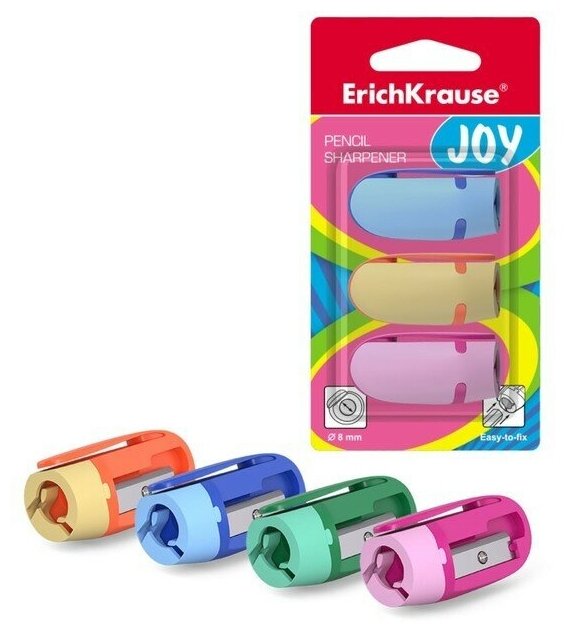 Отзывы на Точилка 1 отверстие ErichKrause Joy, 3 штуки, в блистере, микс./В упаковке шт: 1