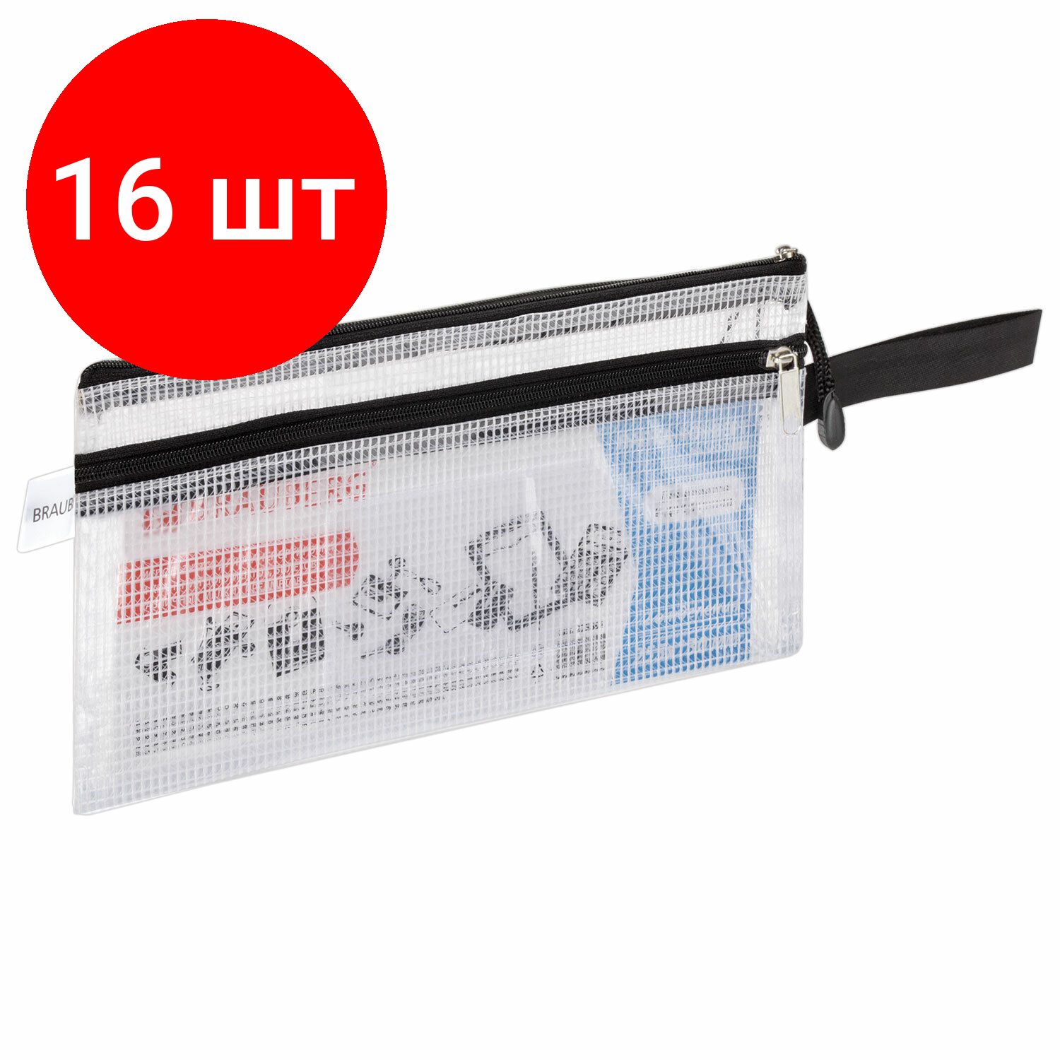 10 цен на Комплект 16 шт, Папка-конверт на молнии малого формата (255х130 мм), 2 отдел, ПВХ, прозрачная, 0.3 мм, BRAUBERG "Solid", 223891