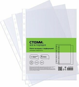 Папка-вкладыш с перфорацией СТАММ, А4, 45мкм, глянцевая x100шт информация: