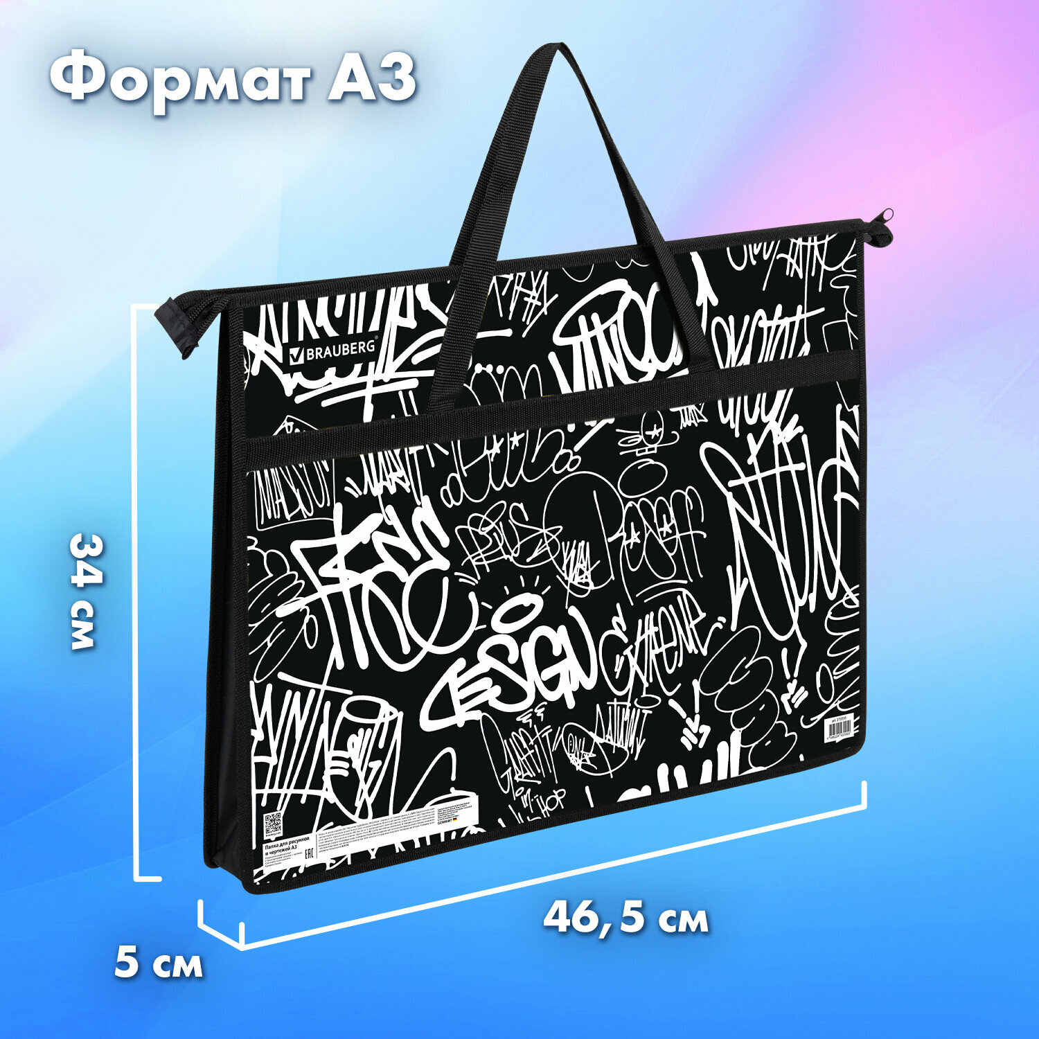 Папка для рисунков и чертежей с ручками Brauberg А3, пластик, молния сверху, Graffiti, 272233 информация: