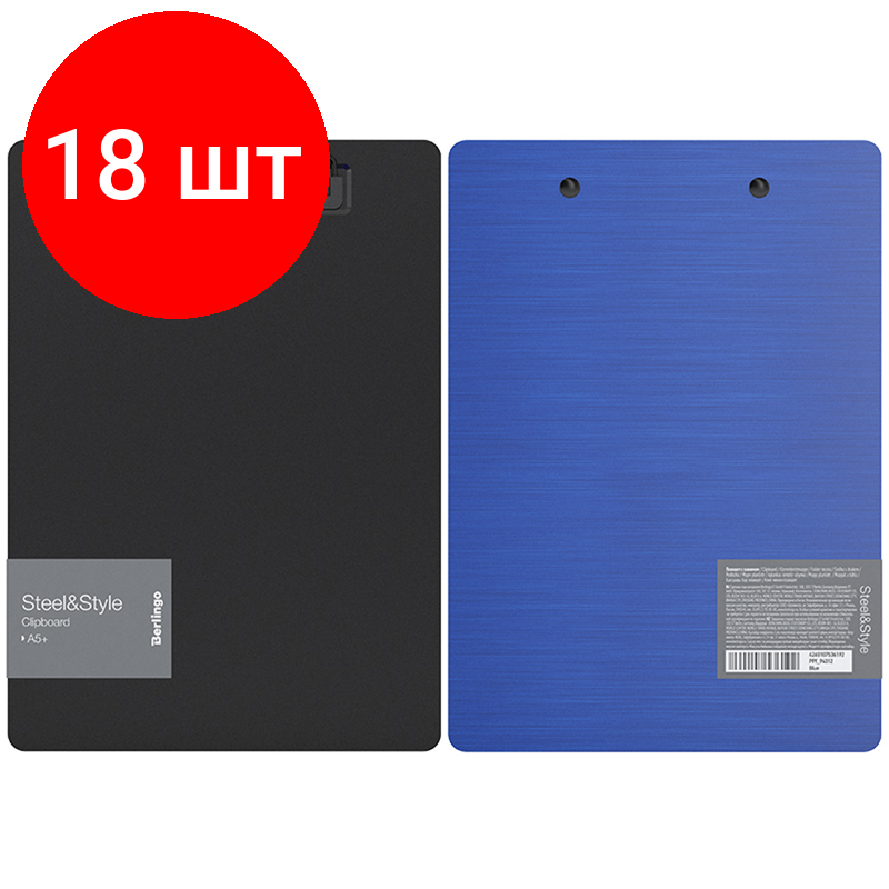 Комплект 18 шт, Планшет с зажимом Berlingo "Steel&Style" А5+, 2500мкм, пластик (полифом), синий информация: