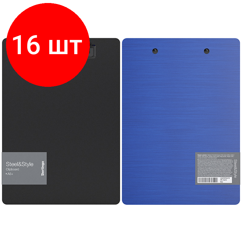 Комплект 16 шт, Планшет с зажимом Berlingo "Steel&Style" А5+, 2500мкм, пластик (полифом), синий информация: