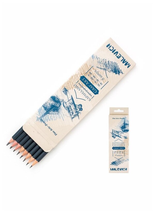 Набор чернографитных карандашей Малевичъ Graf'Art, 8 шт