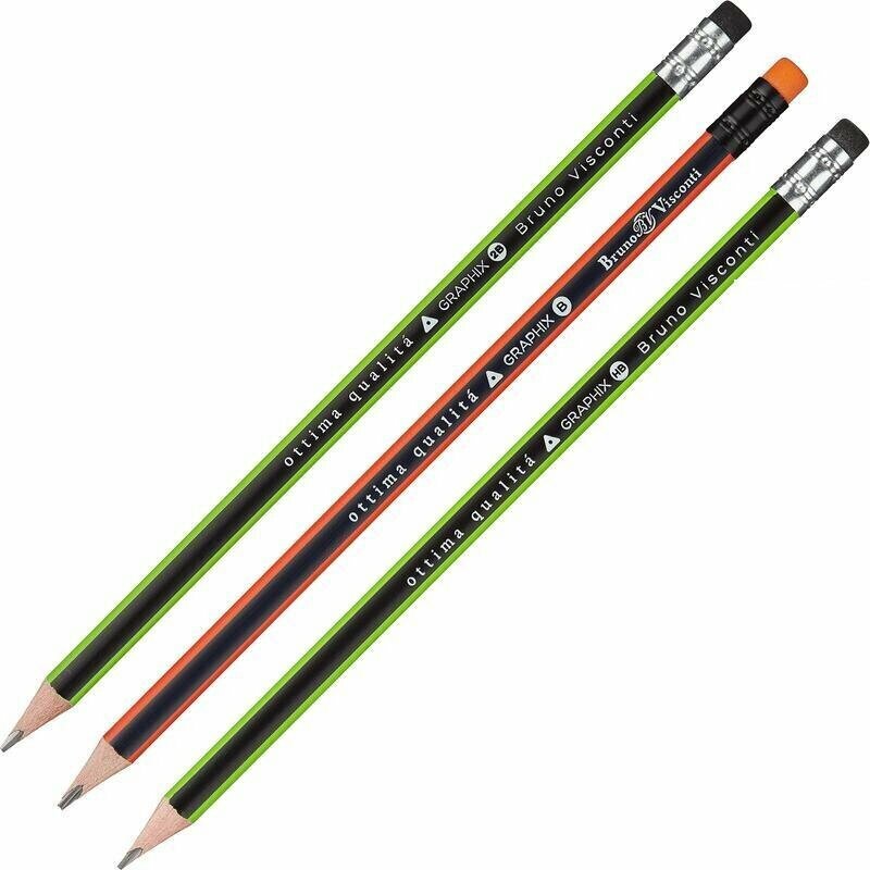 10 цен на Карандаш BrunoVisconti, чернографитовый, 2В_В_НВ, Graphix, с ластиком, Арт. 21-0008-3