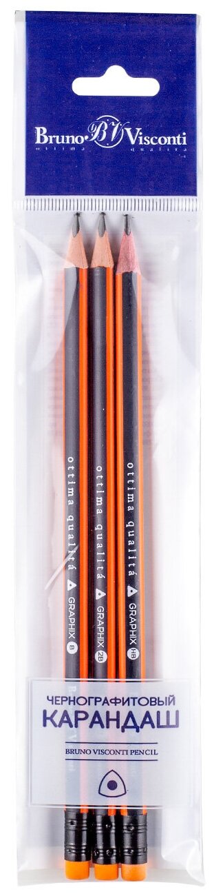 Карандаш BrunoVisconti, чернографитовый, 2В_В_НВ, Graphix, с ластиком, Арт. 21-0008-3 информация: