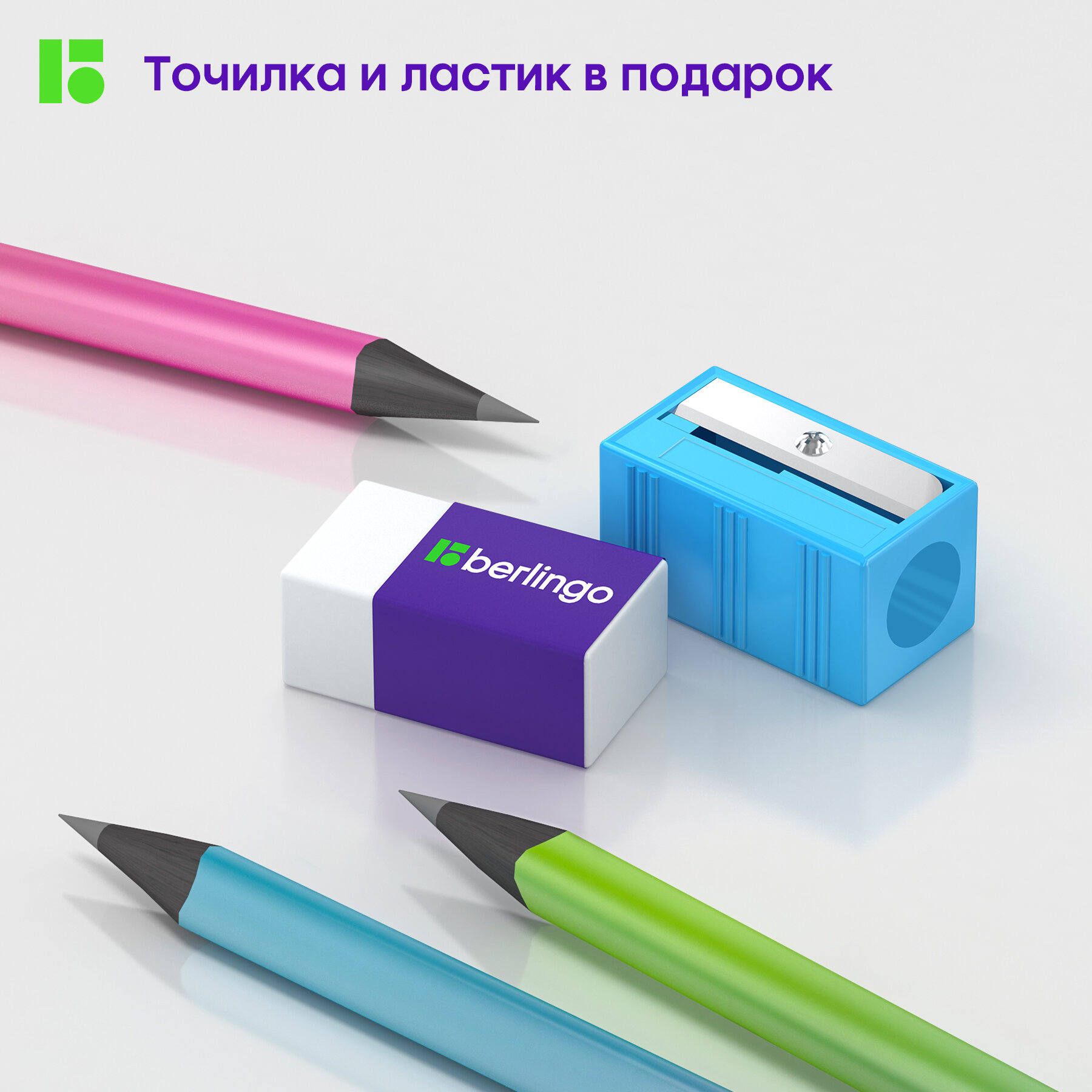 10 цен на Карандаши для школы простые HB с ластиком и точилкой / Набор чернографитных карандашей для офиса и рисования из 12 штук Berlingo "Radiance" / школьная канцелярия и принадлежности