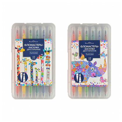 10 цен на Фломастеры-кисточки двусторонние "FUNCOLOR" 12 цветов, в пластиковом пенале