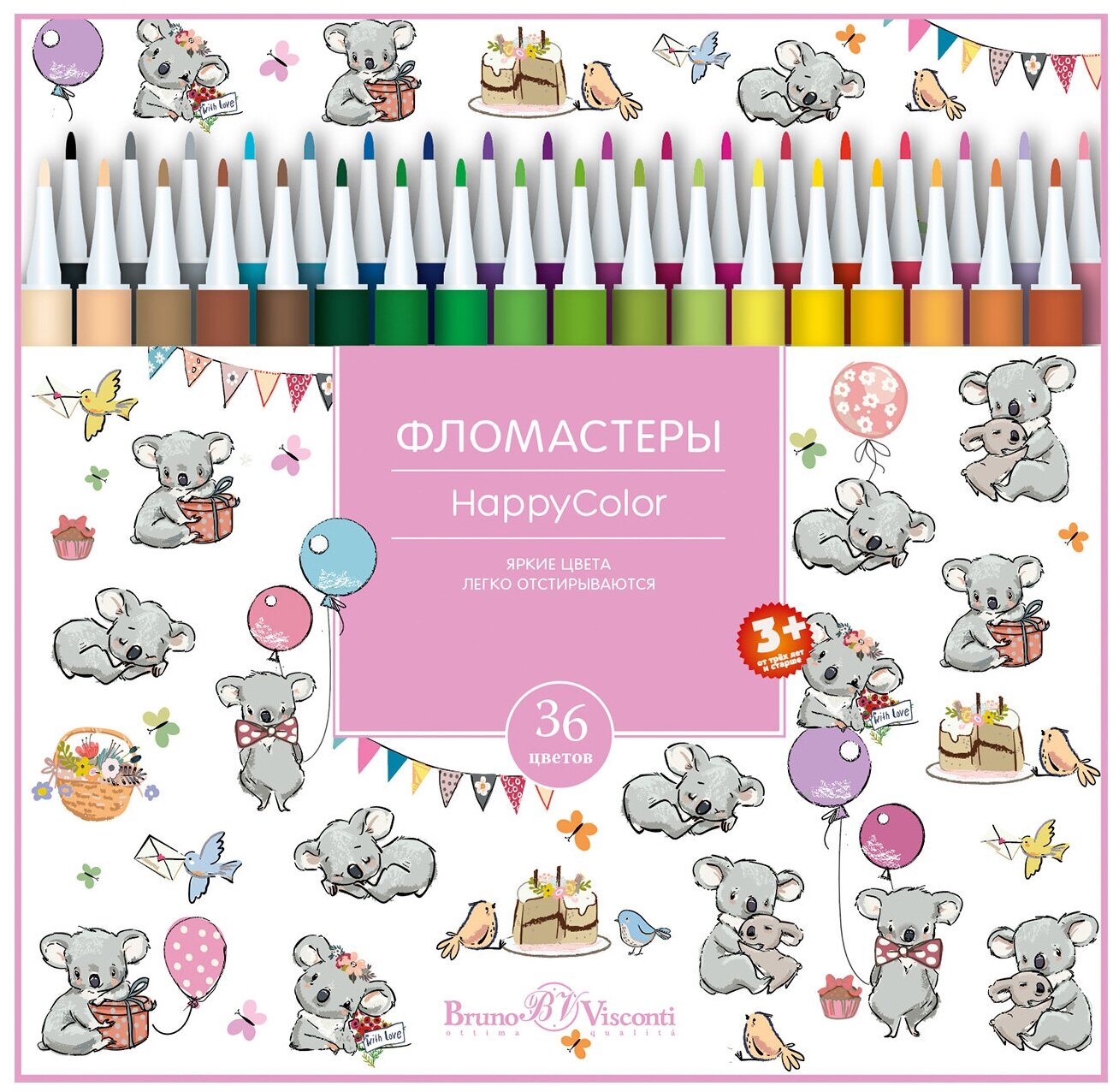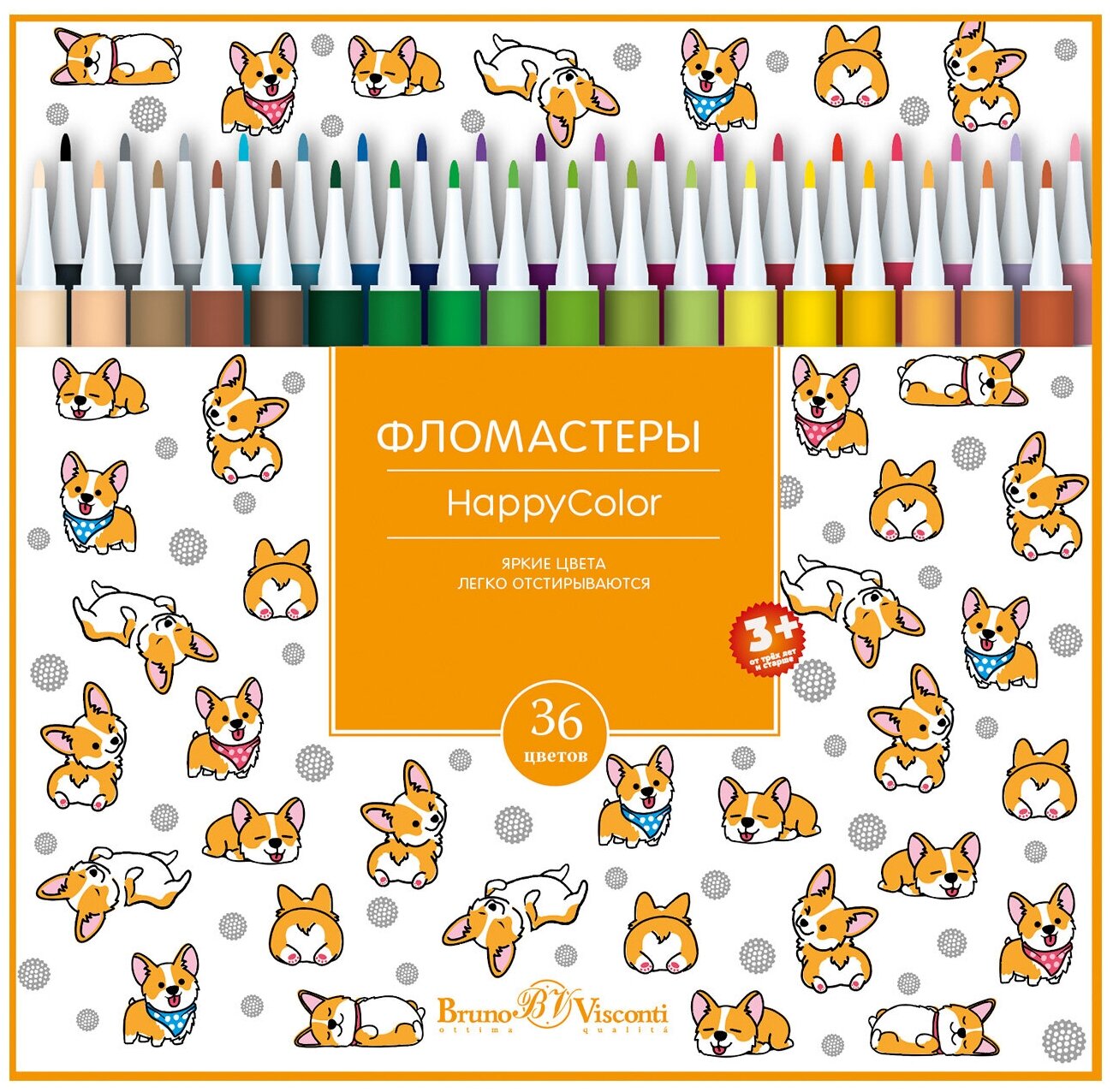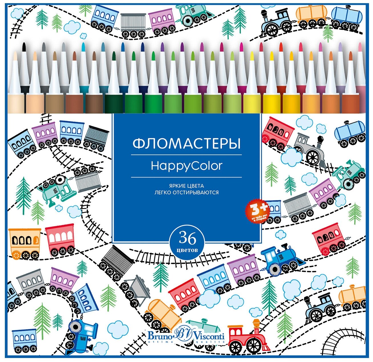 Фломастеры Bruno Visconti, 36 цвета, 4 вида , HappyColor, Арт. 32-0053. Цена за 1 набор. информация: