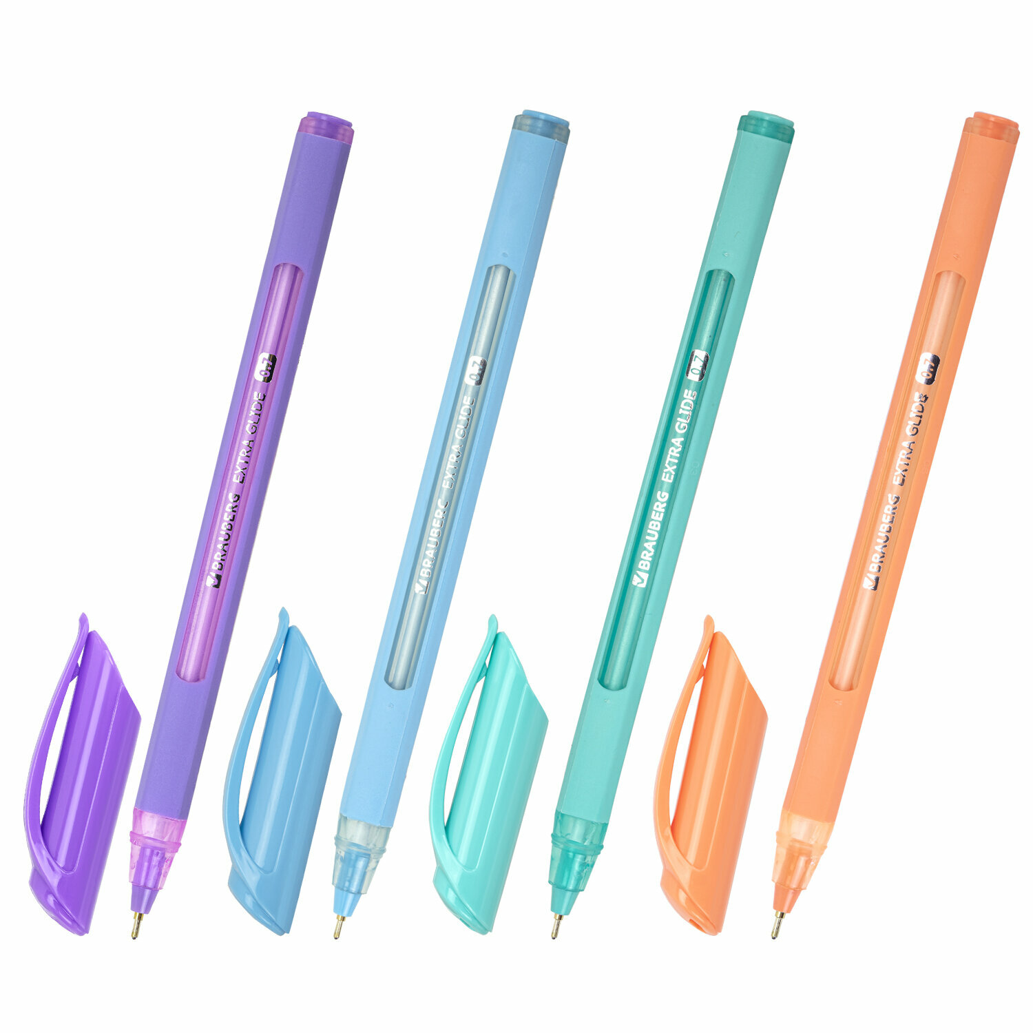 Отзывы на Ручки шариковые синие набор 12 штук тонкие для школы с грипом, линия письма 0,35 мм, Brauberg Extra Glide Soft Pastel, 881018