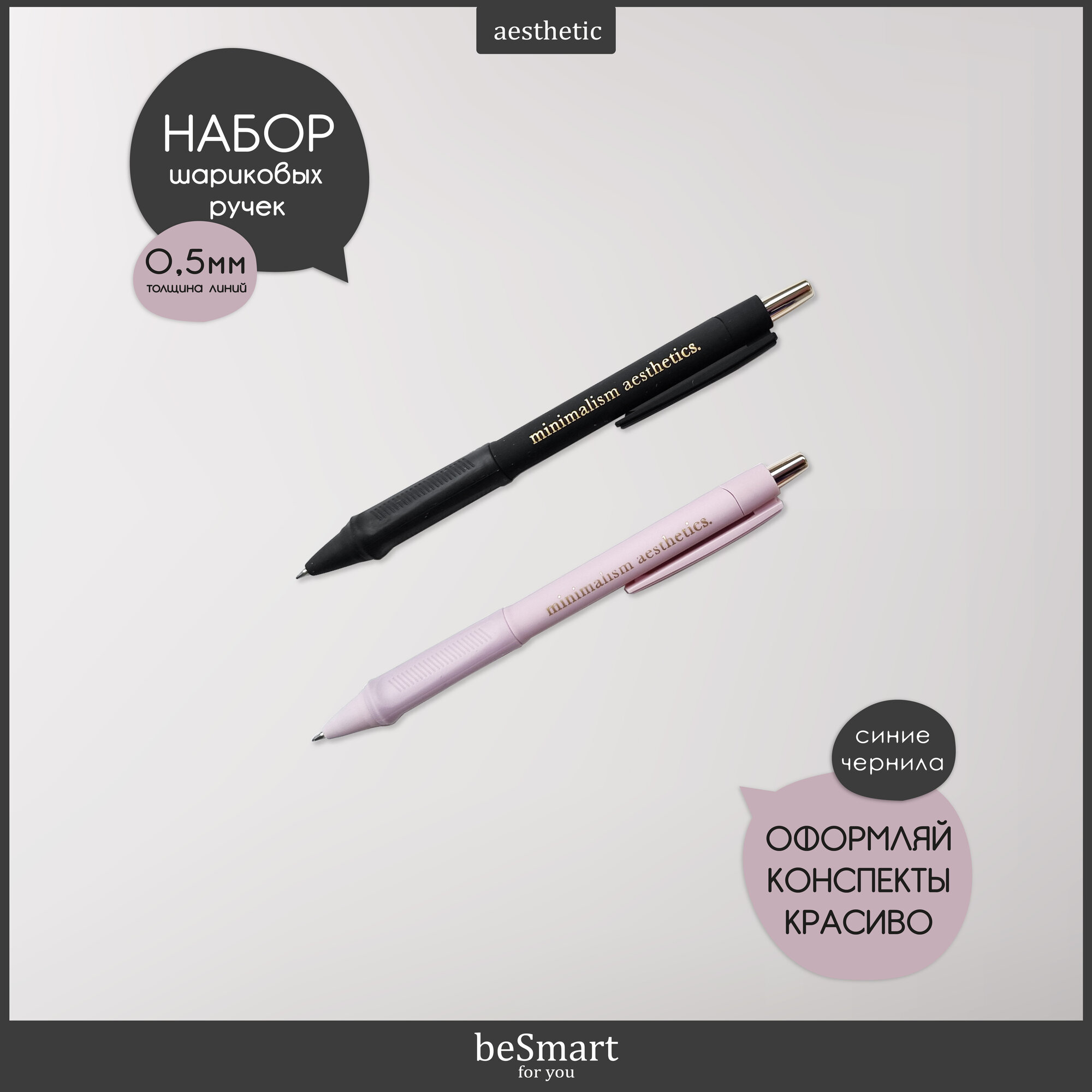 Ручка шариковая автоматическая beSmart "Aesthetics" синие чернила, толщина линии 0,5 мм, набор 2 шт №1 информация: