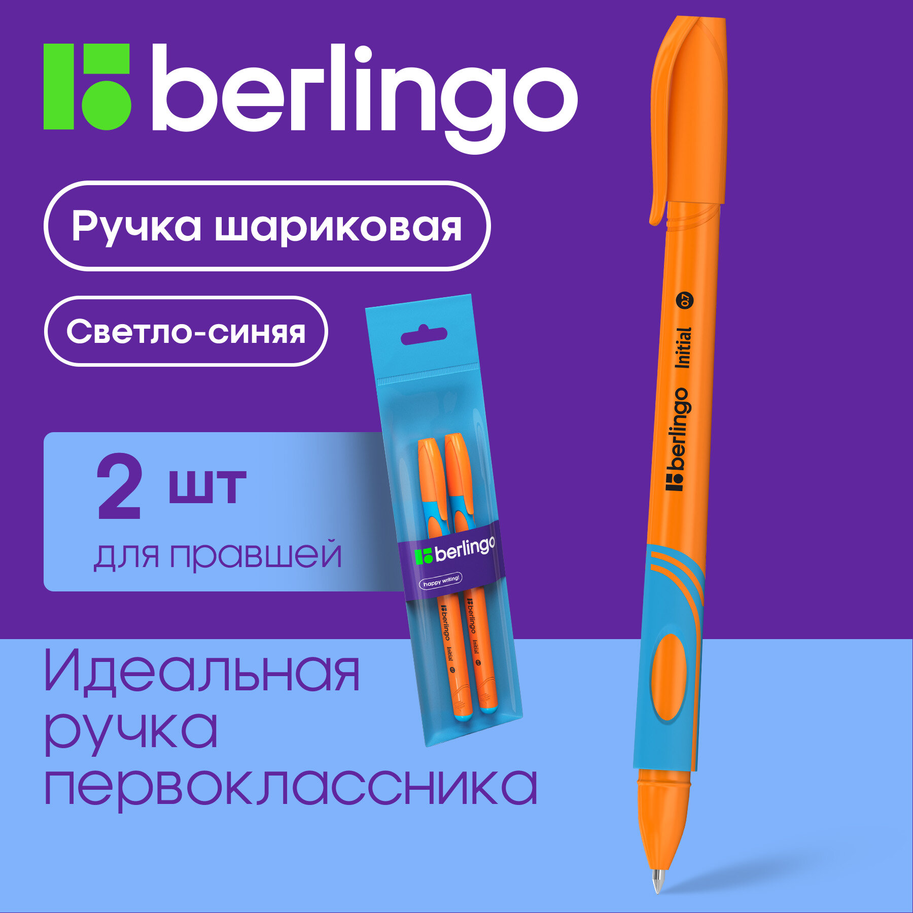 Отзывы на Ручки шариковые светло-синие Berlingo Initial трехгранные для правшей, линия 0,5 мм, набор 2 шт