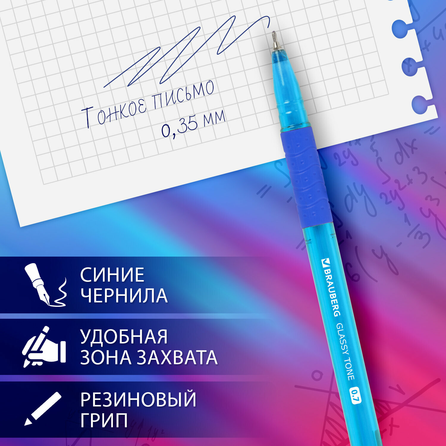 10 цен на Ручки шариковые синие набор 12 штук тонкие для школы, линия письма 0,35 мм, Brauberg Glassy Tone, 881017