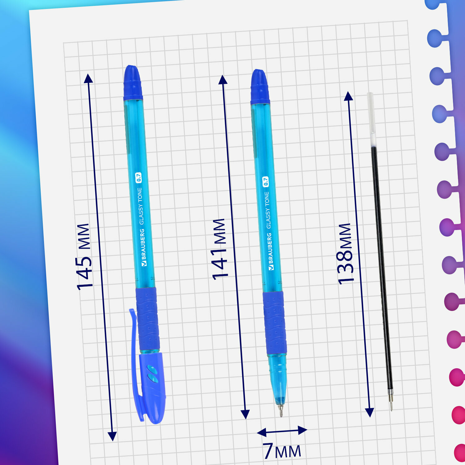 Ручки шариковые синие набор 12 штук тонкие для школы, линия письма 0,35 мм, Brauberg Glassy Tone, 881017 информация:
