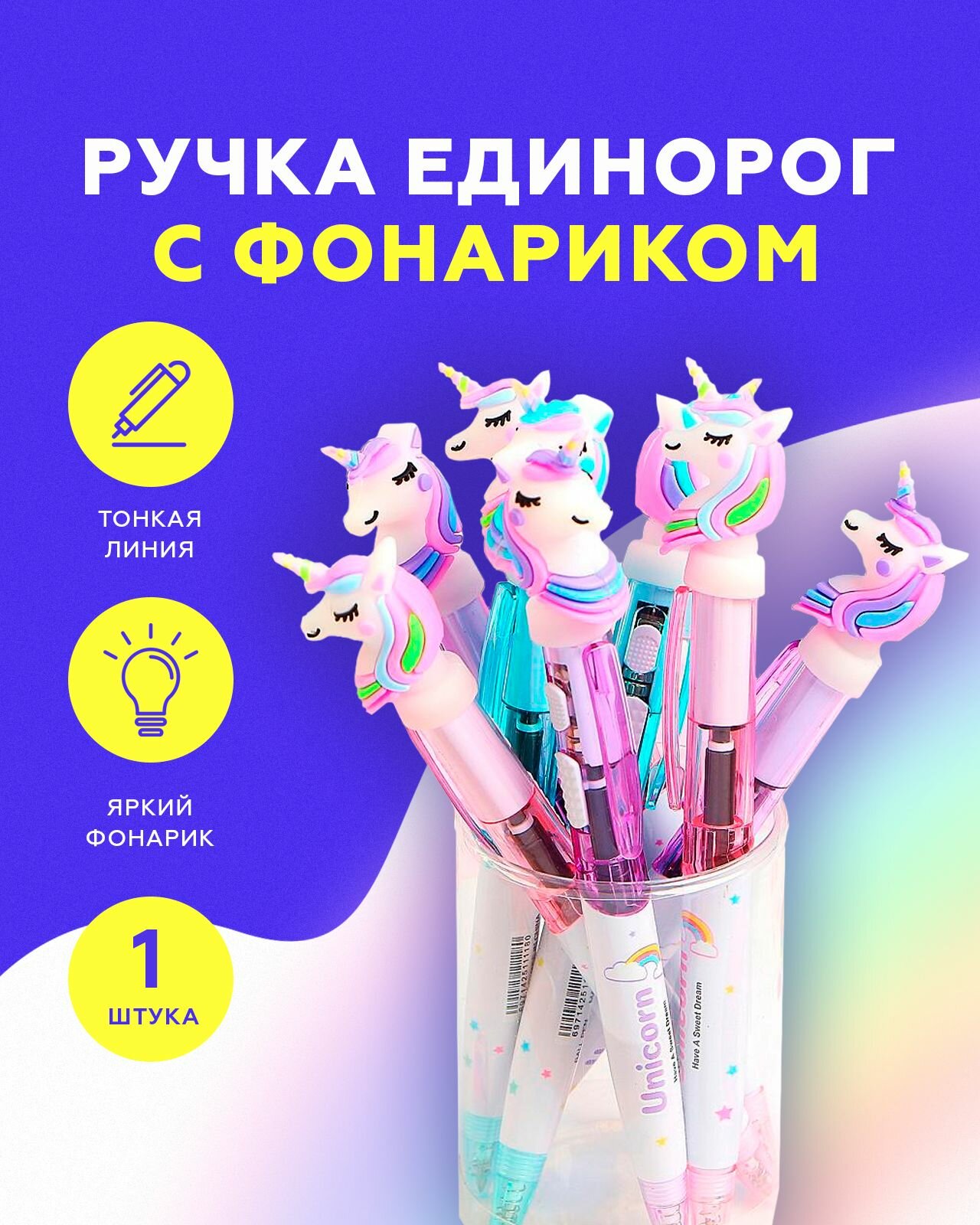 Отзывы на Ручка шариковая подарочная детская светящаяся Единорог Unicorn
