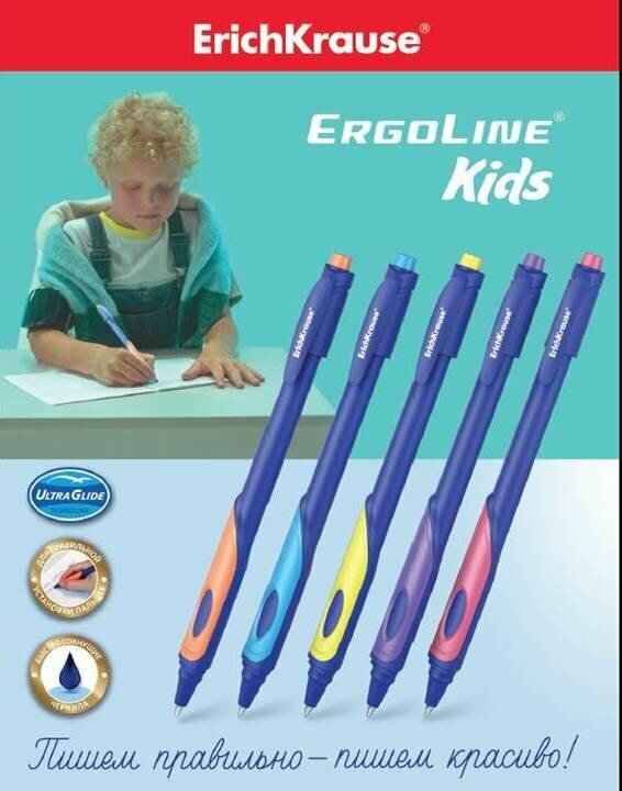Ручка шариковая Erich Krause ErgoLine Kids, синяя 0.7 мм