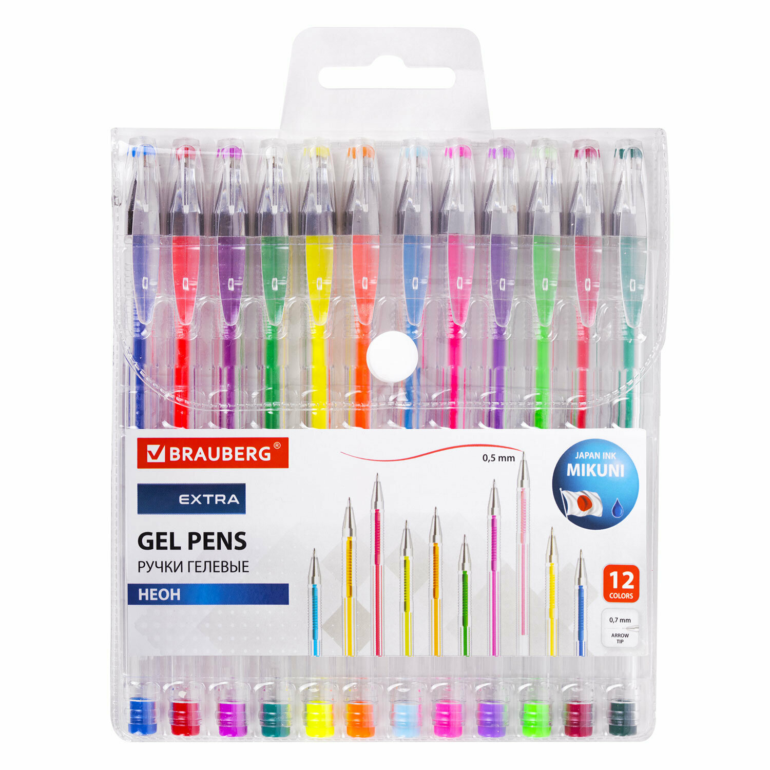 Гелевые ручки цветные Неон Brauberg Extra, Набор 12 Цветов, узел 0,7 мм, линия 0,35 мм, 143912 информация: