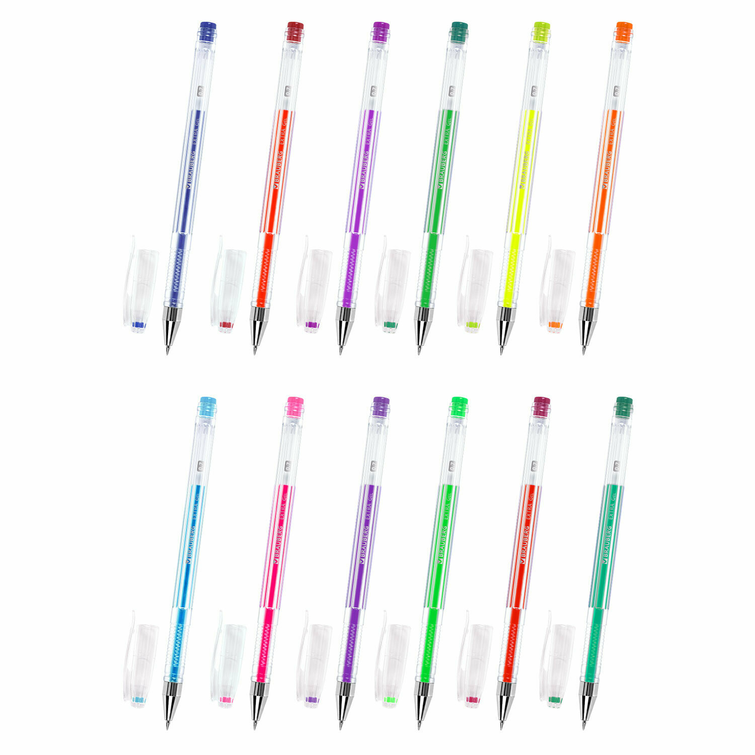 Гелевые ручки цветные Неон Brauberg Extra, Набор 12 Цветов, узел 0,7 мм, линия 0,35 мм, 143912