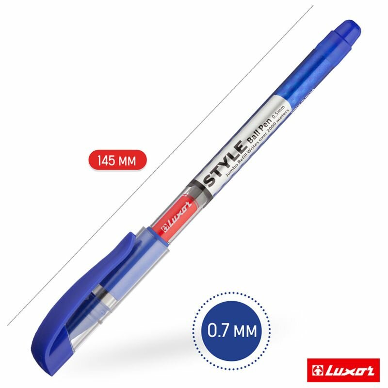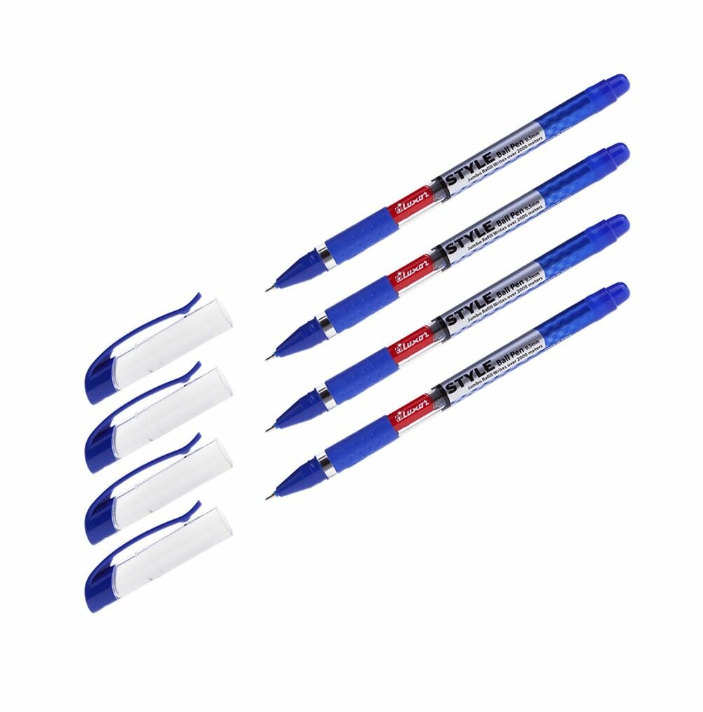 Набор из 4 шт. - Ручка шариковая Luxor "Style" синяя, 0,7 мм, грип информация: