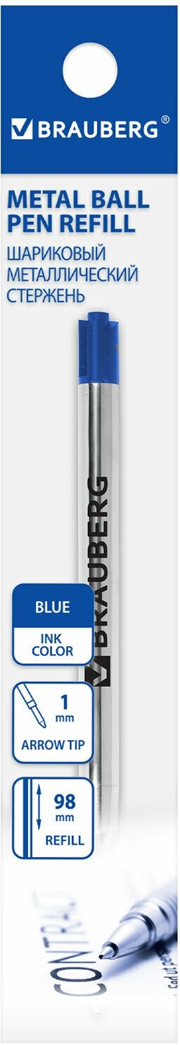 Стержень шариковый для ручки паркер для письма Brauberg, тип Parker, металлический, 98 мм, линия 0,5 мм, подвес, синий, 170199 информация: