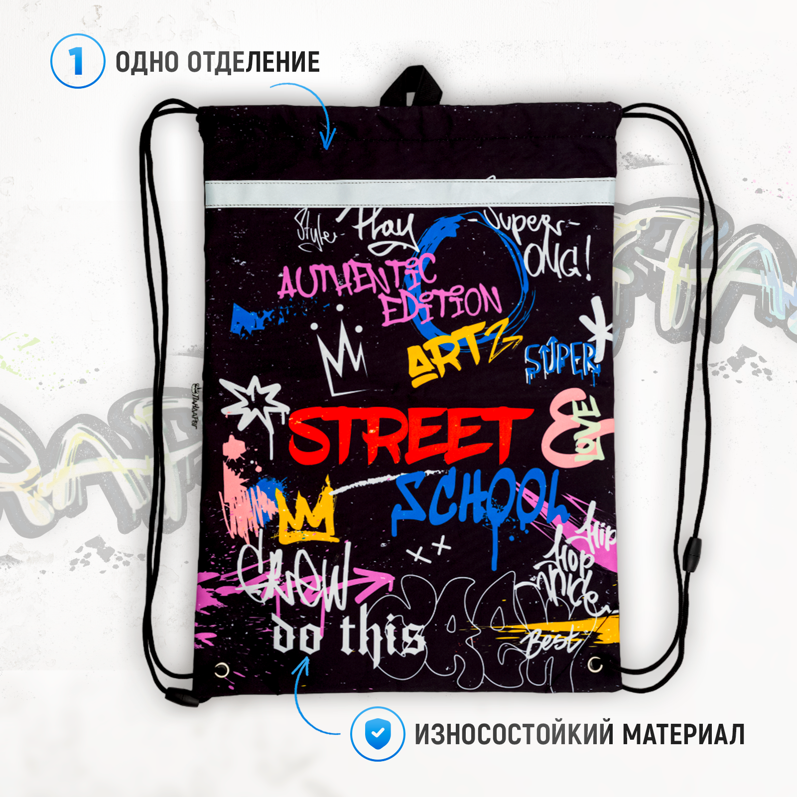 Сумка-рюкзак / мешок для сменной обуви / для вещей / стильный мешок для детей / для сменки, с петлей для подвеса 46х33 см, Граффити информация: