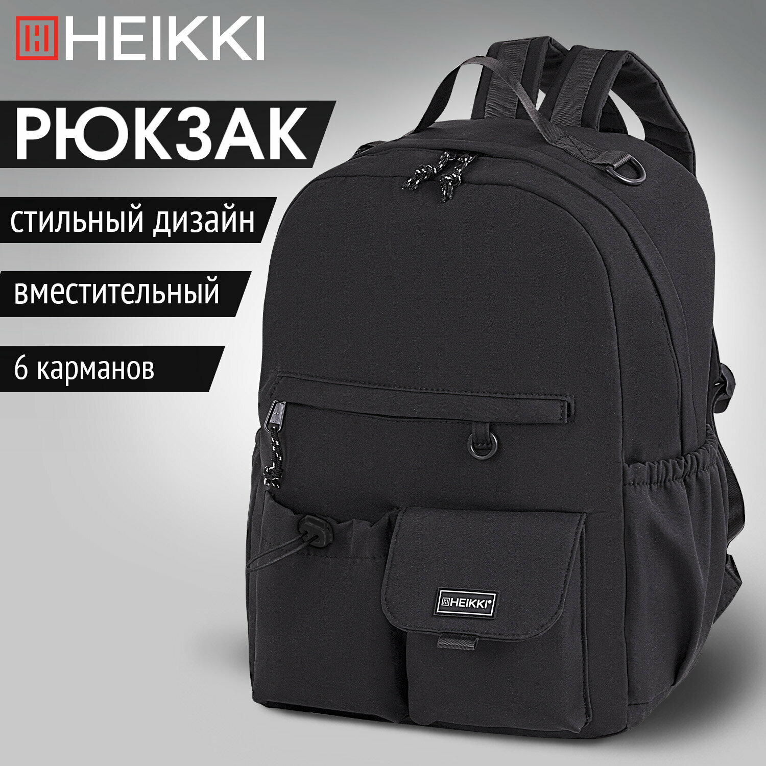 10 цен на Рюкзак Heikki Edition (хейки) универсальный, 6 карманов, черный, 42х30х14 см, 272540