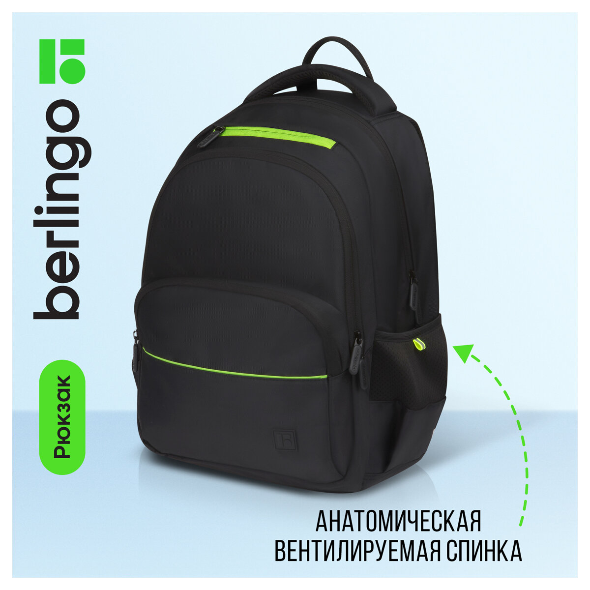 Ранец школьный Berlingo U3 "Black-green" 41х29,5х13 см, 2 отделения, 4 кармана, эргономичная спинка (RU-U3-1060) информация: