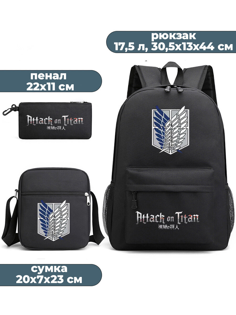 10 цен на Рюкзак сумка пенал 3 в 1 Атака титанов Attack on Titan черный