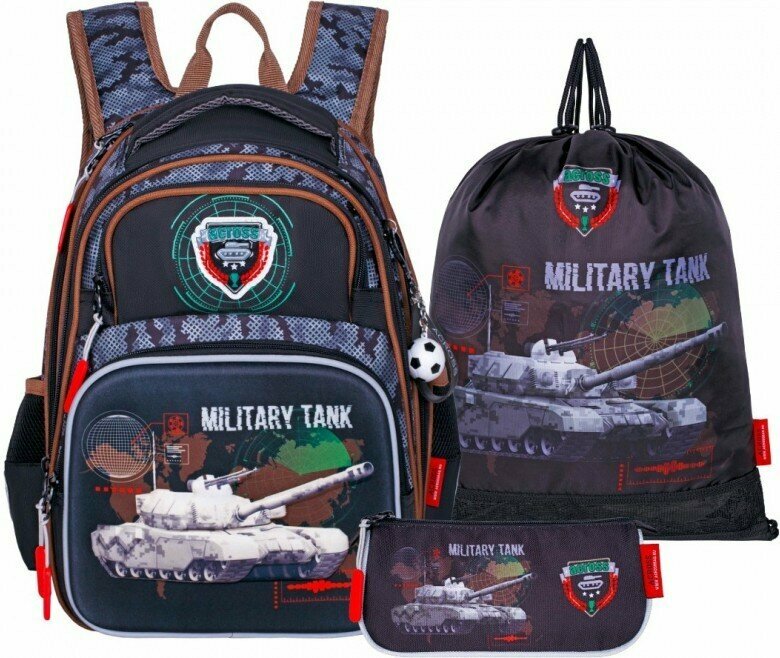 Школьный ранец с мешком и брелком в комплекте Across ACR20-292-10 Черный