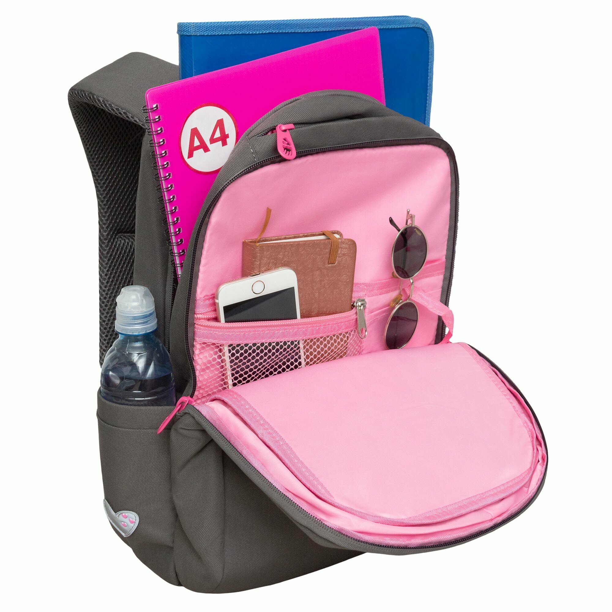 Рюкзак школьный для девочки подростка, с ортопедической спинкой, для средней школы, GRIZZLY (серый - черный)