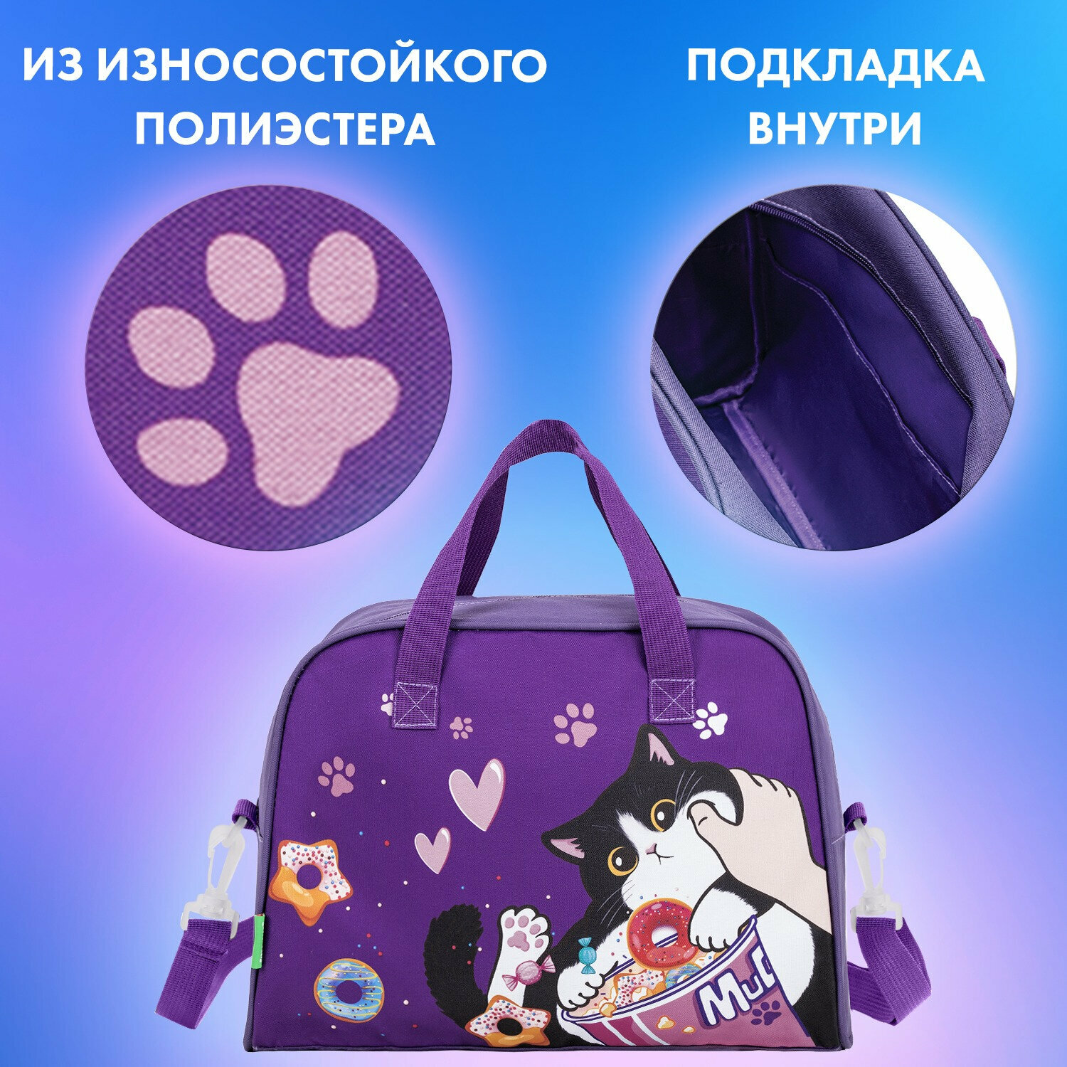 Сумка детская для ребенка девочки в бассейн, для танцев, сменки и физкультуры Brauberg с ручками, 35x25x15 см, Dream cat, 271592