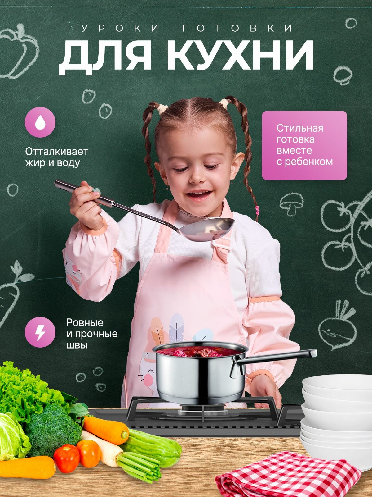 Фартук детский с нарукавниками для рисования и творчества, художественный фартук для труда с карманом, размер L, розовый с овечкой 604 ₽