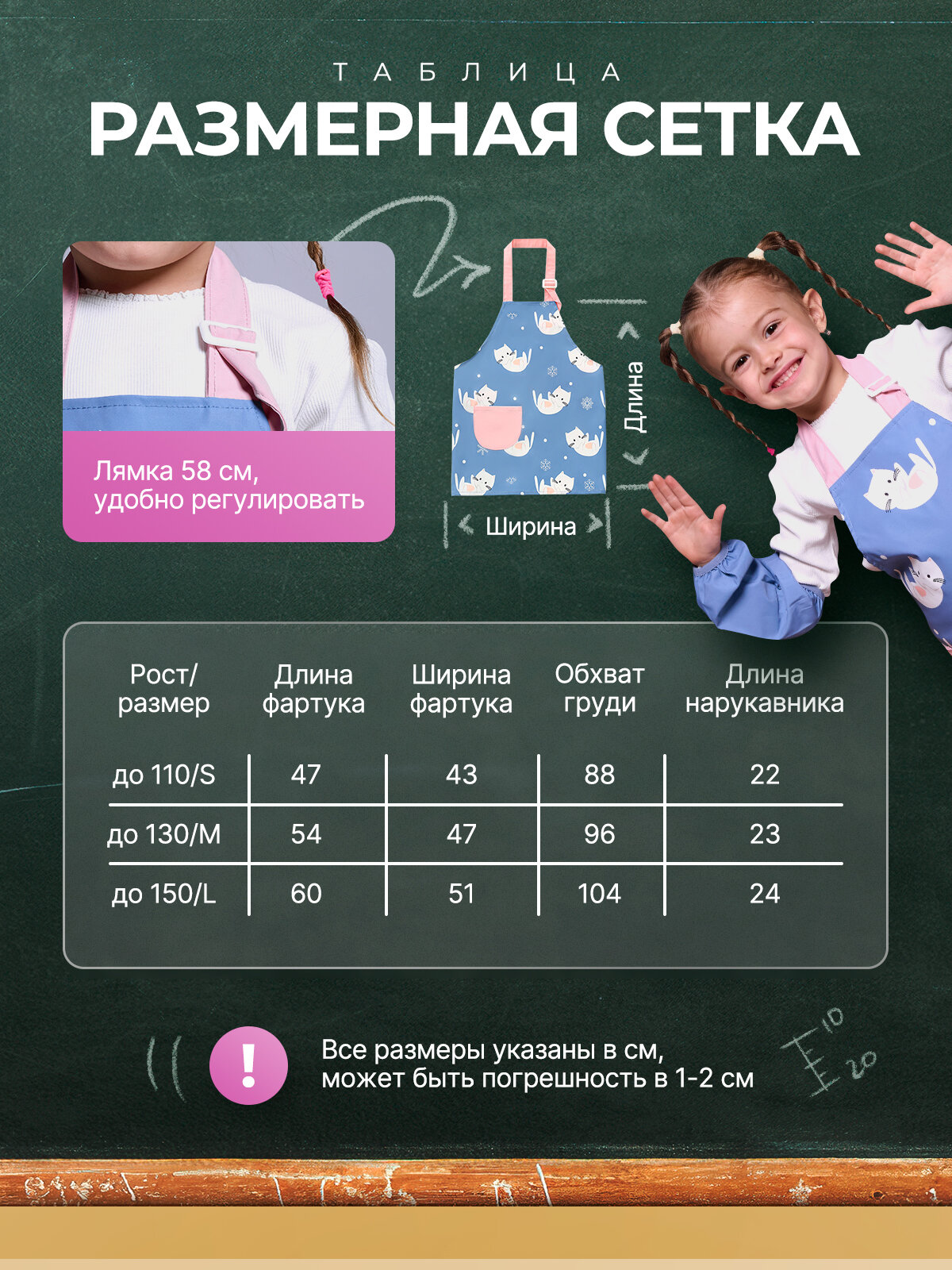Отзывы на Фартук детский с нарукавниками для рисования и творчества, художественный фартук для труда с карманом, размер L, голубой с котиками