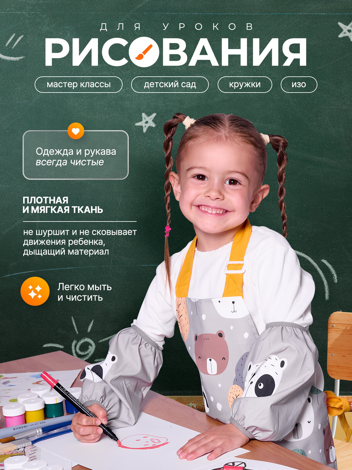 Отзывы на Фартук художественный детский с нарукавниками для труда (с карманом), серый с пандой, размер M