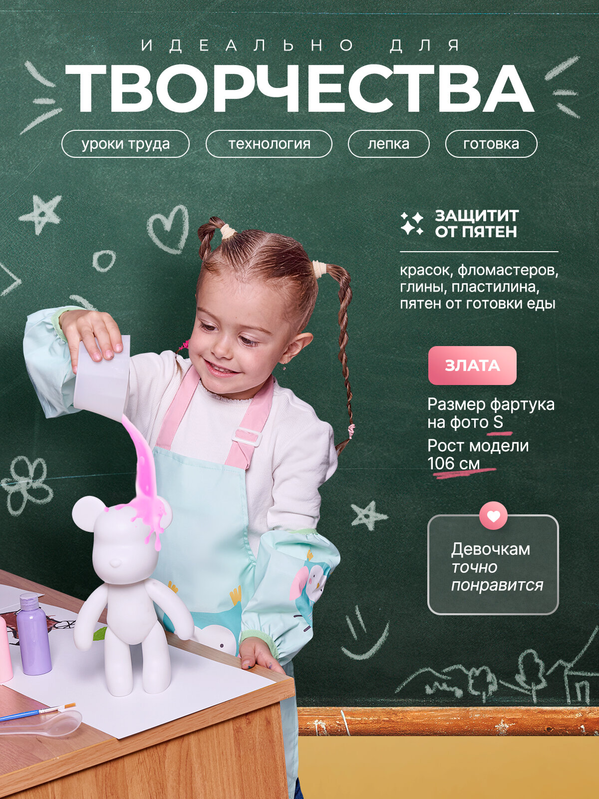 Фартук детский с нарукавниками для рисования и творчества, художественный фартук для труда с карманом, размер S, розовый с овечкой 672 ₽