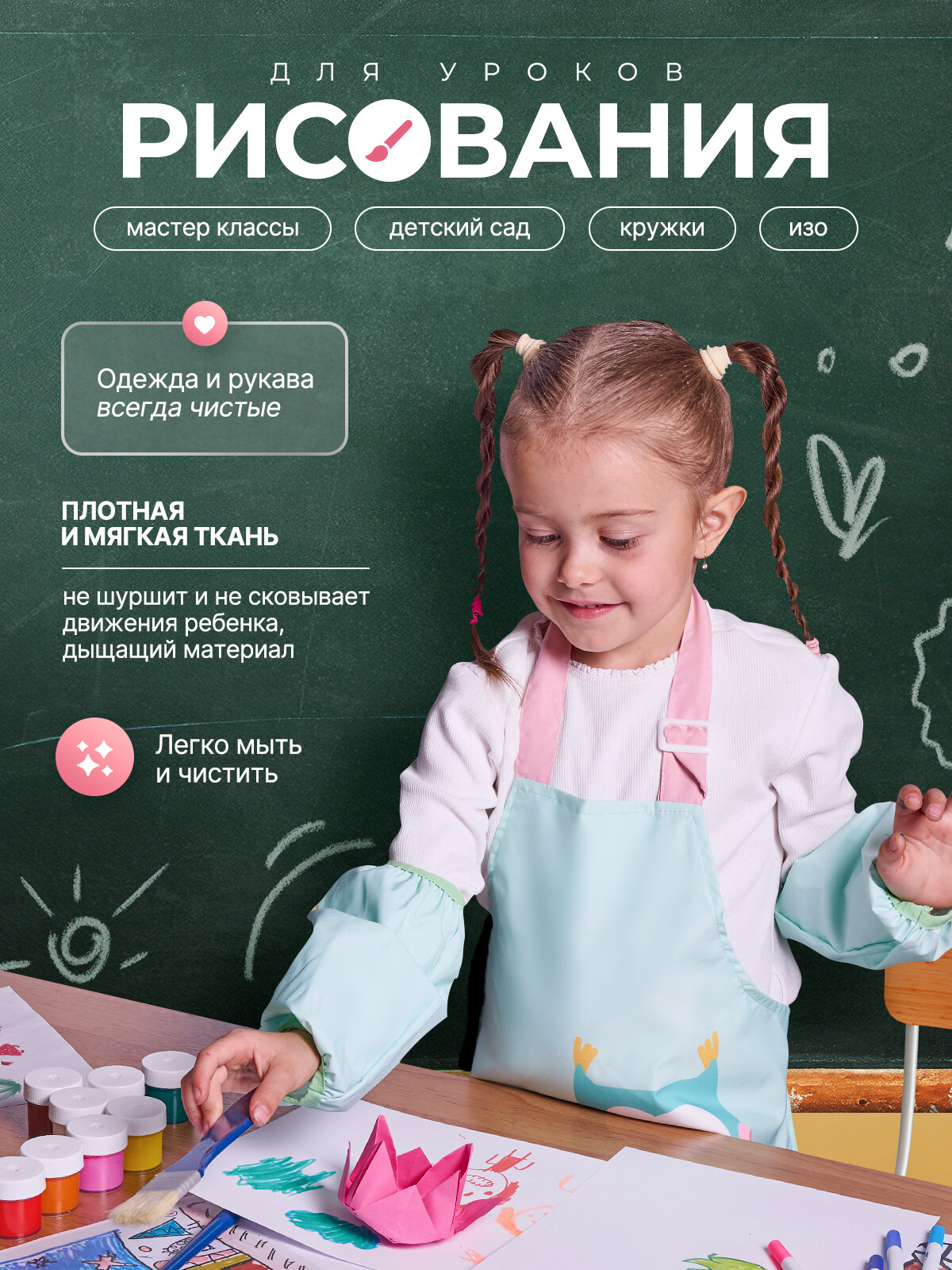 Фартук детский с нарукавниками для рисования и творчества, художественный фартук для труда с карманом, размер M, розовый с овечкой 817 ₽