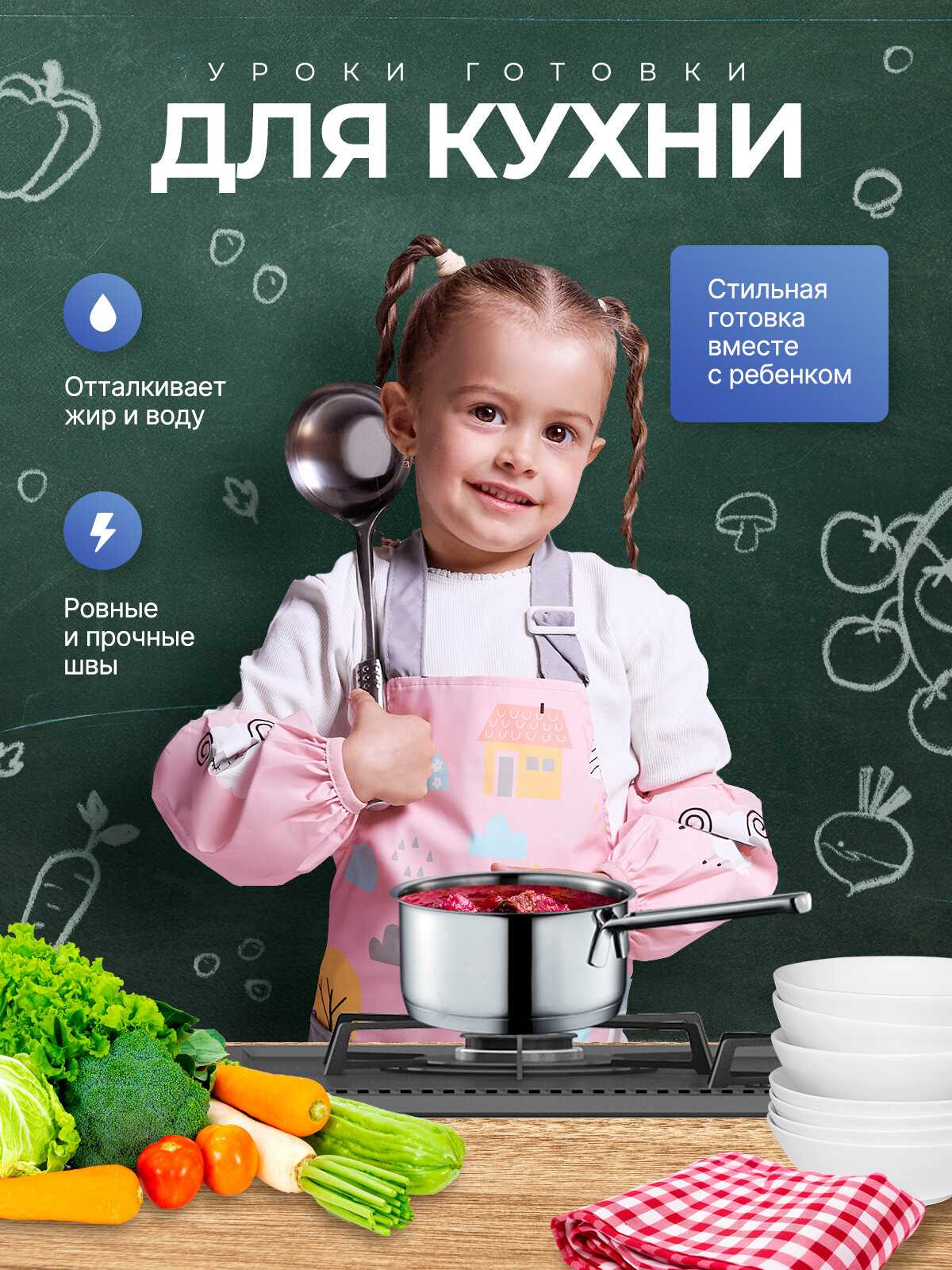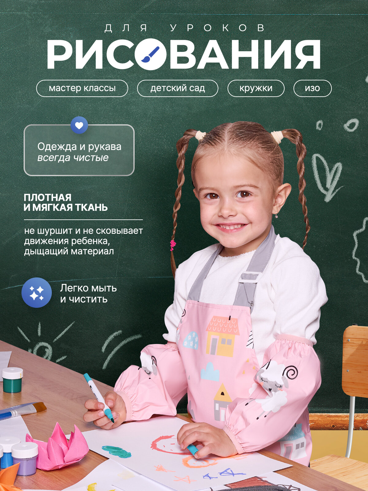 Отзывы на Фартук детский с нарукавниками для рисования и творчества, художественный фартук для труда с карманом, размер L, розовый с овечкой