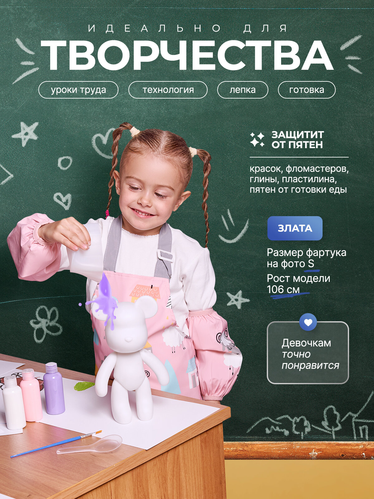 Фартук детский с нарукавниками для рисования и творчества, художественный фартук для труда с карманом, размер S, розовый с овечкой 672 ₽