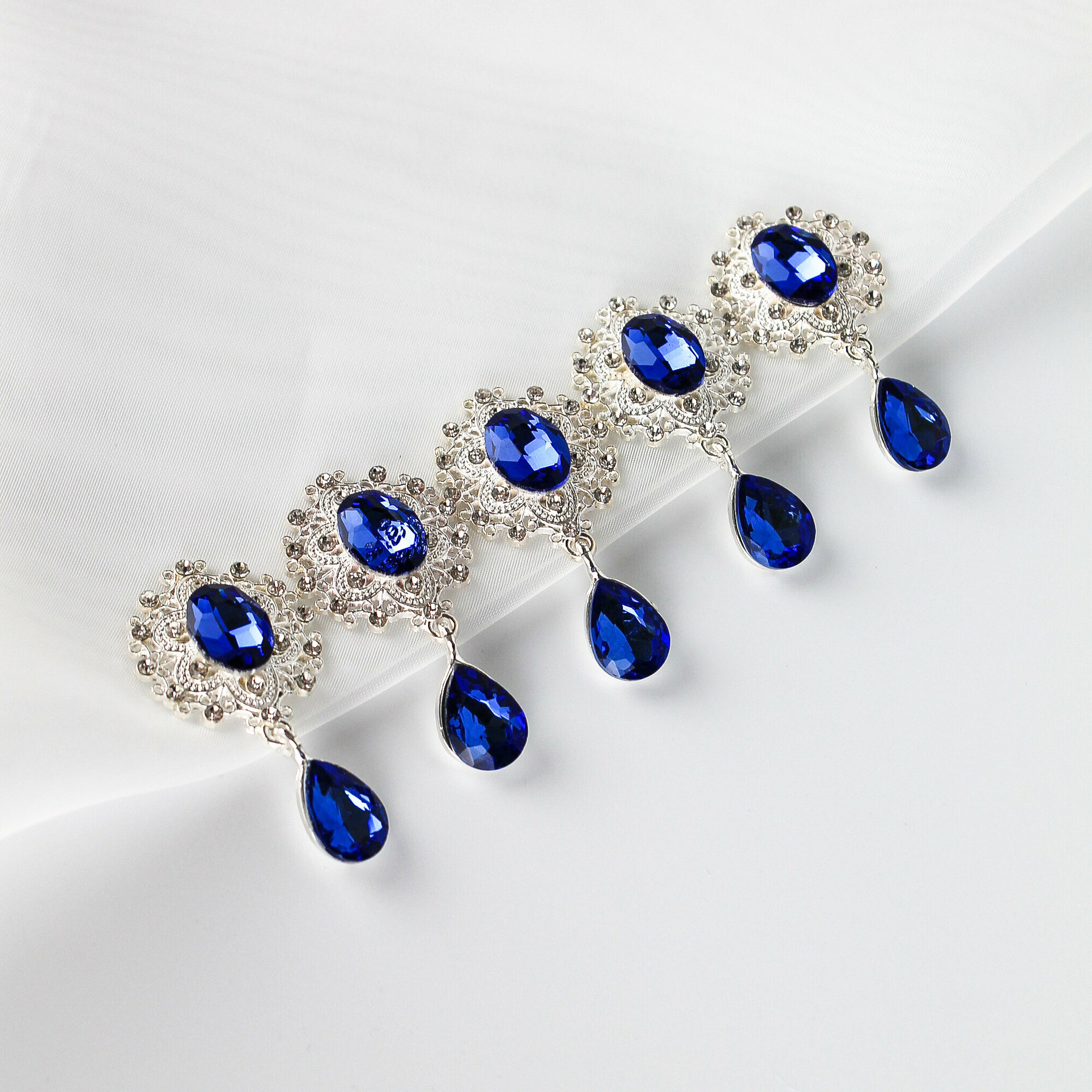 Кабошоны ювелирные со стразами и подвеской капля, цвет синий/серебро, набор 5 шт. информация: