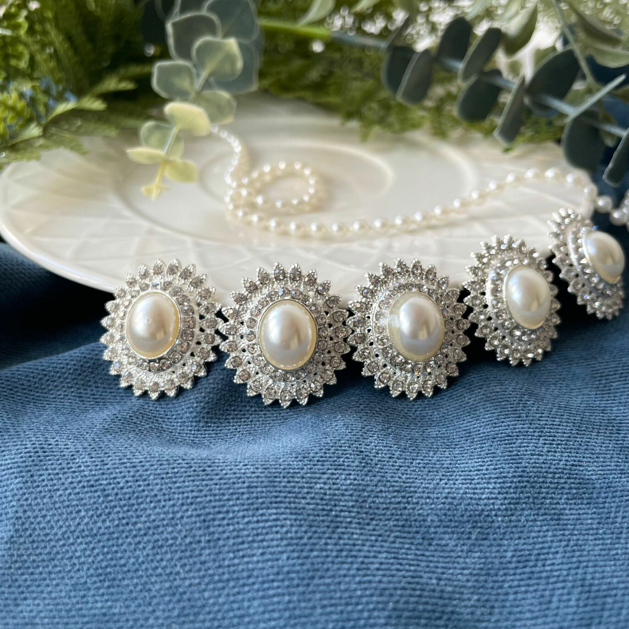 Кабошон - украшение со стразами и жемчужиной круглое, цвет белый жемчужный, 1,5 см, металлическое, 10 шт. 561 ₽