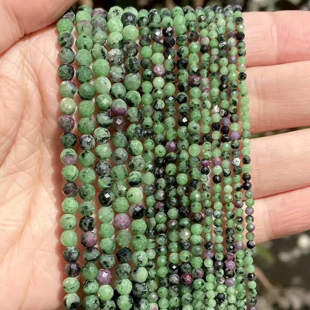 Турмалин бусины для рукоделия, шарик граненый 2 мм, 38 см/нить, около 190 шт, натуральный камень