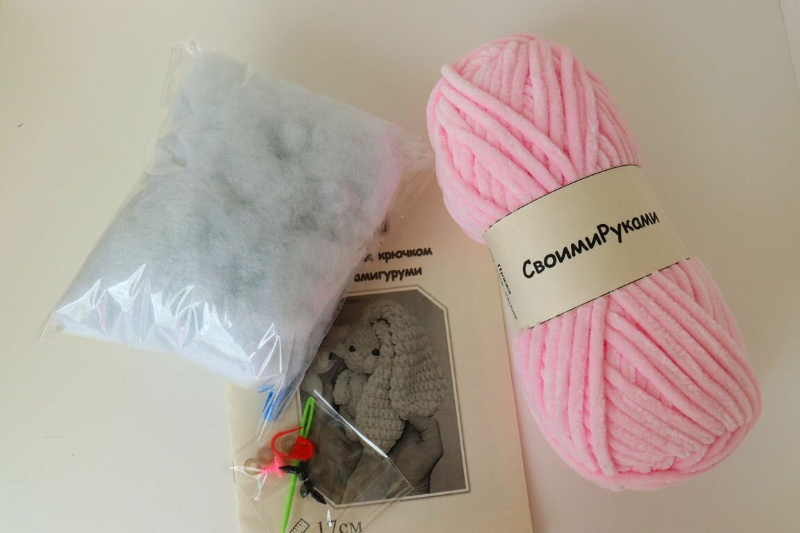 Набор для вязания игрушки плюшевая зайка крючком информация: