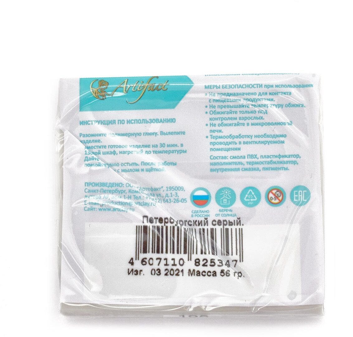 | Подробная комплектация | Полимерная глина запекаемая Артефакт Классическая, брус 50-56 г |