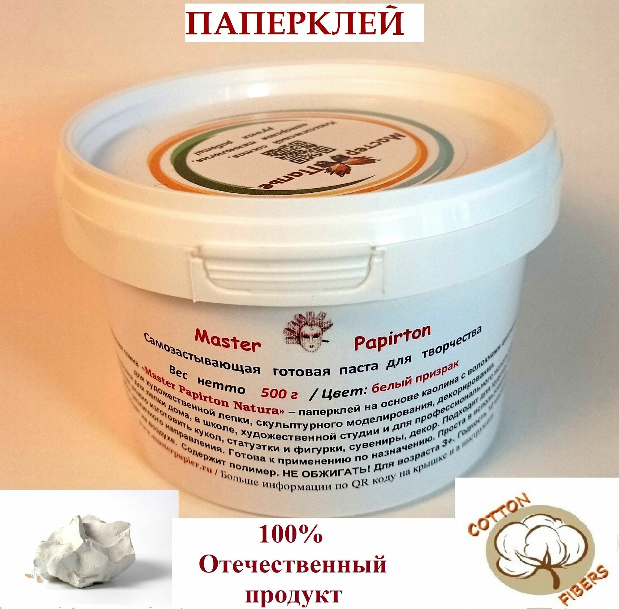 Паперклей "Master Papirton Natura" бумажная глина самотвердеющая цвет "белый призрак" 500 г информация: