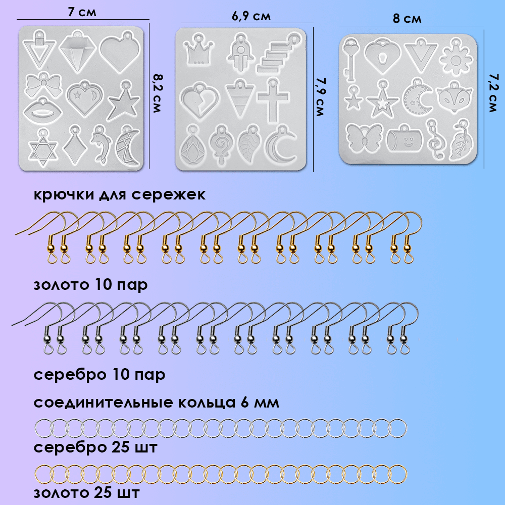 Силиконовые молды для эпоксидной смолы и фурнитура. Формы для создания украшений 890 ₽